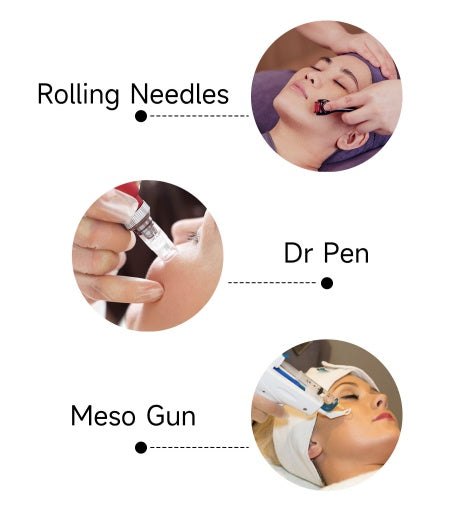 Such as rolling needles, Dr pen, Meso gun methods accelerate skin metabolism. help cell regeneration and effectively improve skin problems such as skin sensitivity and sagging.